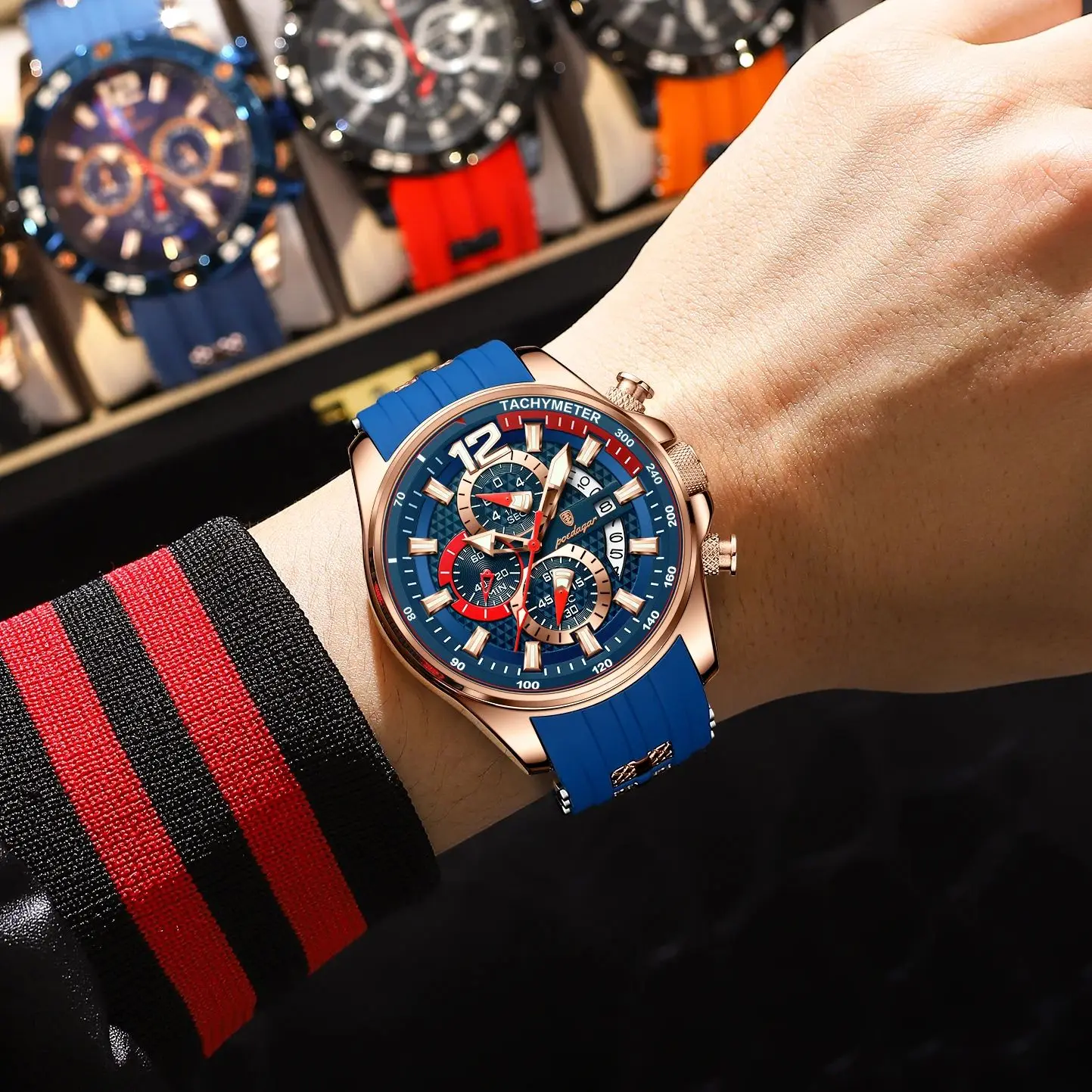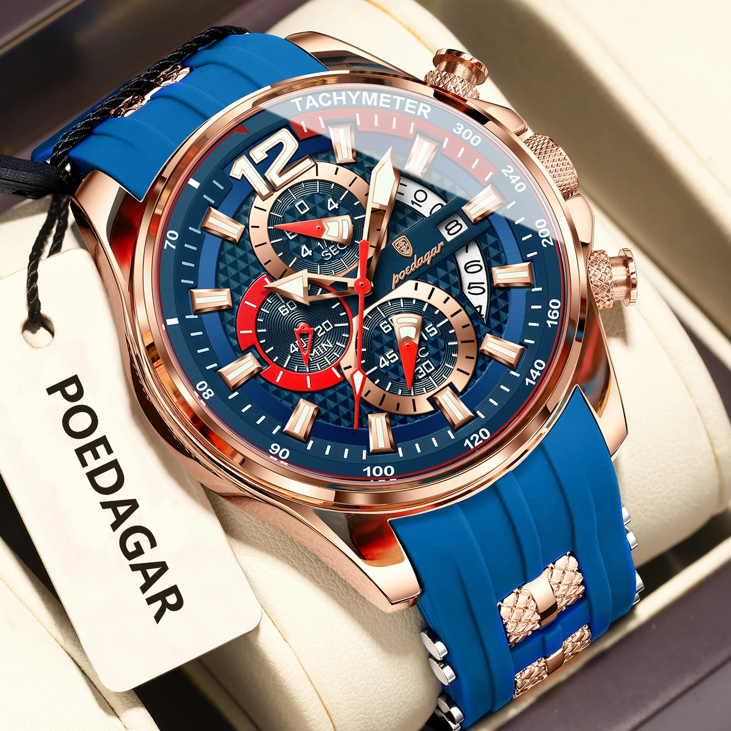 POEDAGAR Luxury Watch For Men Date Chronograph Luminous Waterproof Silicone Male Watch Fashion Sports Quartz Men’s Watches Reloj